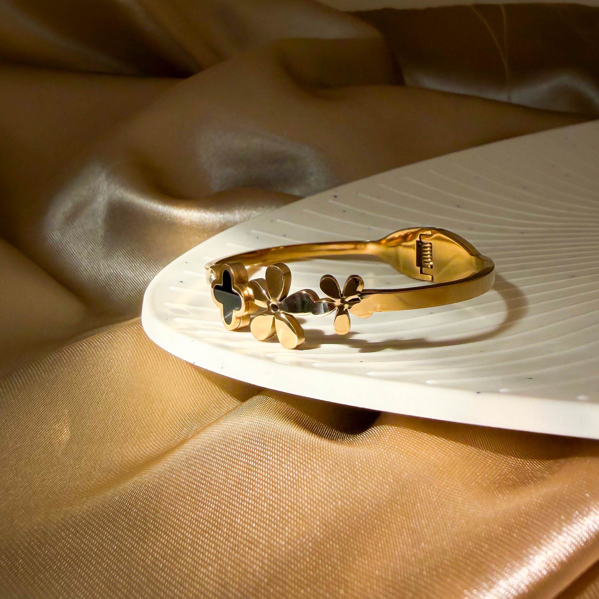 Black Clover Flower Cuff Bracelet